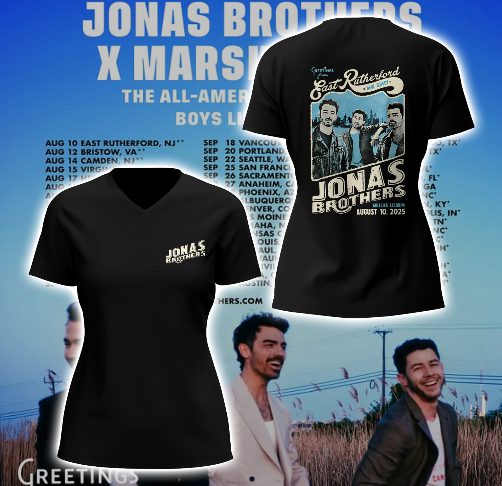 Limited Edition JONAS20: Greetings From Your Hometown Tour 2025 V-neck TShirt-PA081325024