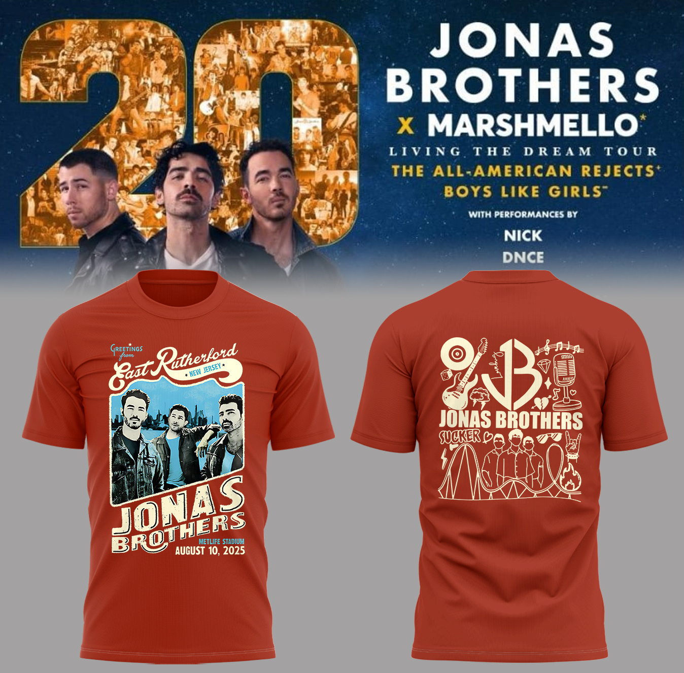 Limited Edition JONAS20: Greetings From Your Hometown Tour 2025 x New Jersey Tshirt-PA081325030