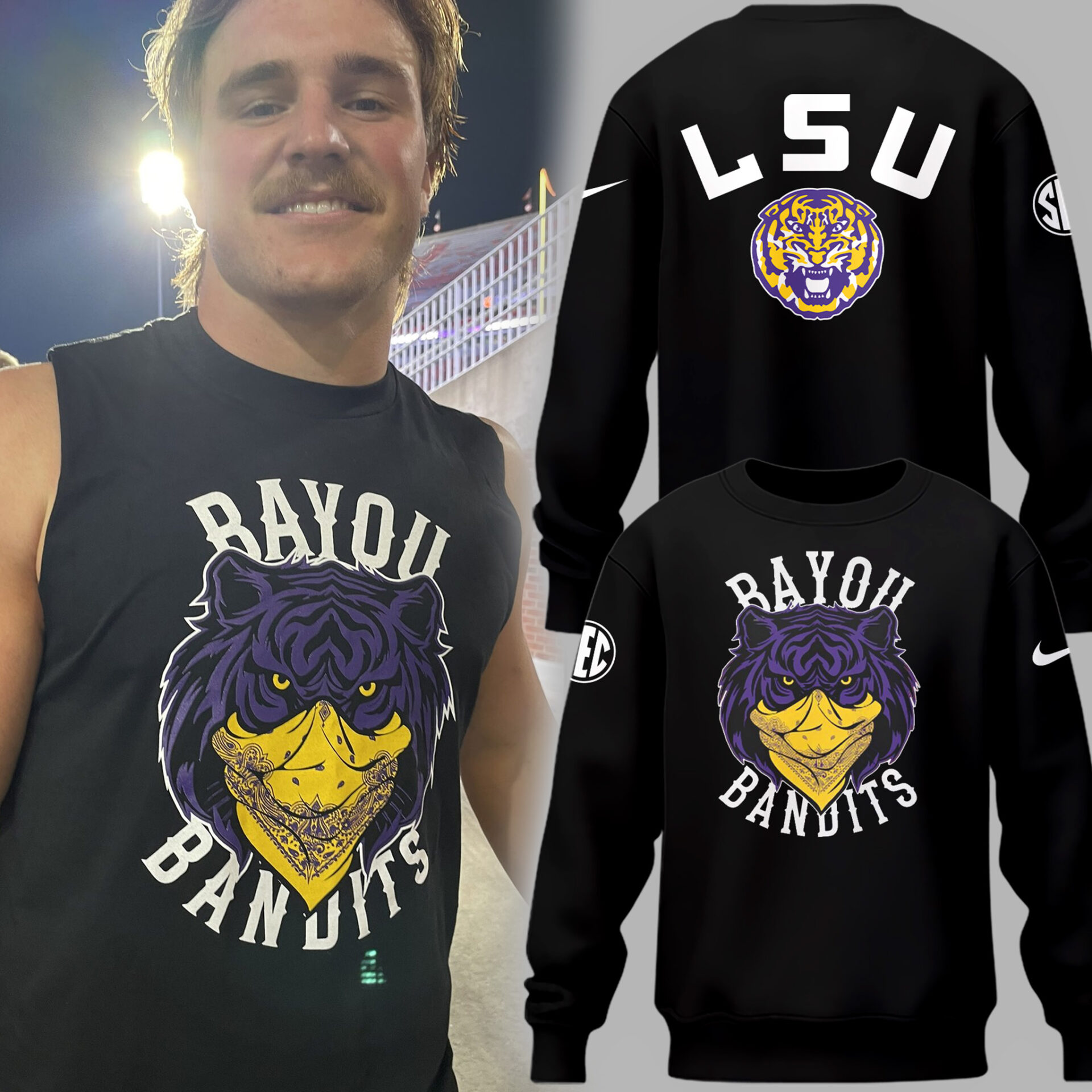 Limited Edition LSU Football Bayou Bandits Logo Black Sweatshirt-PU25090302