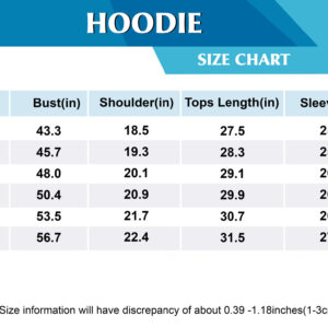 Healthy fabric 25% Cotton, 75% Polyester. Features a specialty high definition heat-dye application that ensures long lasting color vibrancy even after machine washing.The fabric is durable and resistant to wrinkles, shrinking and mildew.Each hoodie is custom printed, cut and sewn just for you when you place your order ? there may be small differences in the design on the seams and arms due to the custom nature of the production process.