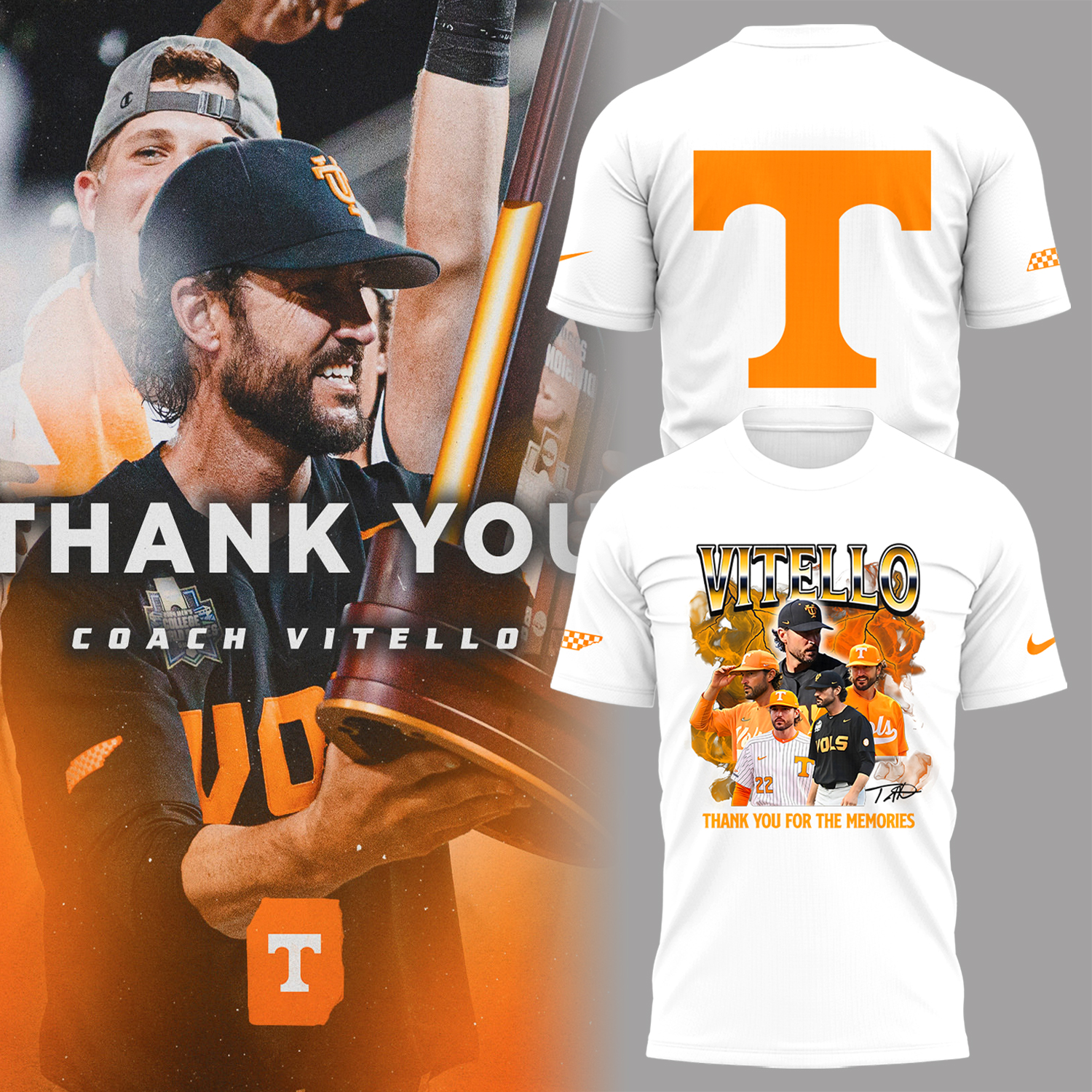 Limited Edition Tennessee “Coach Vitello, Thank You For The Memories ” Shirt-AB1023251100