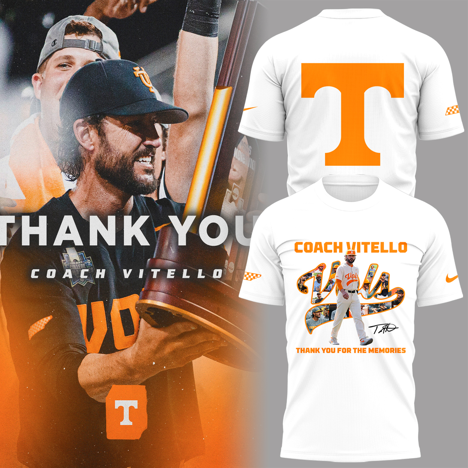 Limited Edition Tennessee “Coach Vitello, Thank You For The Memories ” Shirt-AB1023251100