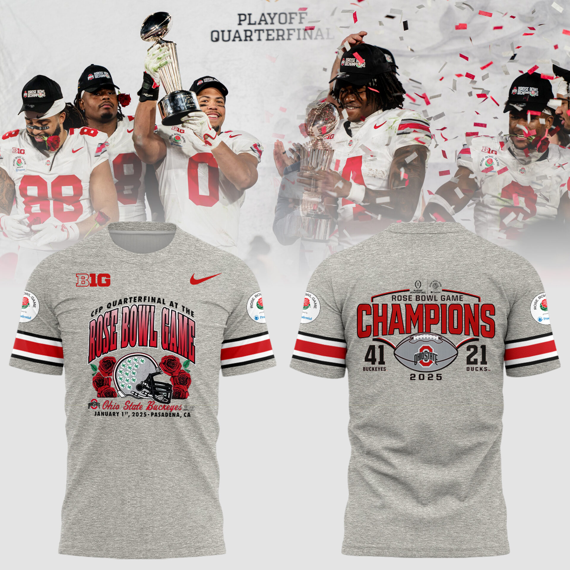 Ohio State Football Limited 2024 Rose Bowl Champions Grey TShirt-PU03012507